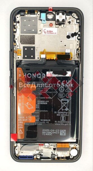 Дисплей Honor 400 Pro (DNP-NX9) - в сборе с тачскрином, лицевой панелью (в раме), аккумулятором HB536586EIW, динамиком и шлейфом боковых кнопок, Black, оригинал 0235APLE
