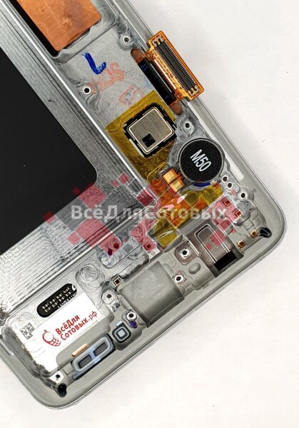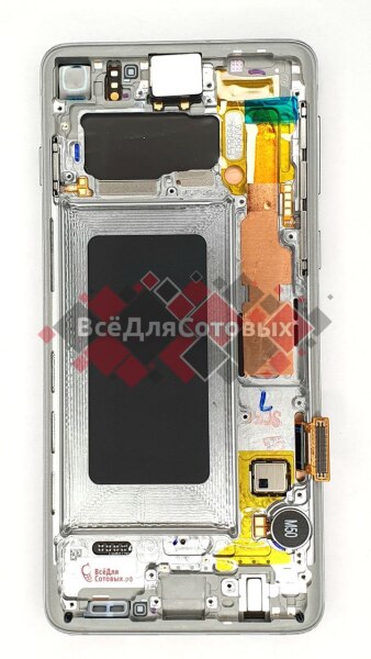 Дисплей Samsung SM-G973F/DS Galaxy S10 - в сборе с тачскрином, средней частью, кнопками громкости и включения, динамиком и вибро, Silver / White, оригинал GH82-18850B GH82-18835B