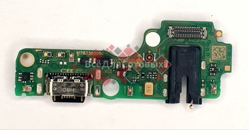 Плата нижняя (шлейф) Tecno Spark 30C (KL5 / KL5n) в сборе с разъемом зарядки Type-C, гарнитуры и микрофоном, XK678_sub оригинал 12205779