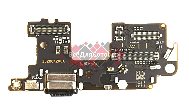 Плата нижняя (шлейф) Xiaomi Mi 11 (M2011K2C) в сборе с разъемом зарядки Type-C, микрофоном и сим-коннектором, 35200K2MOA, оригинал 56000F00K200